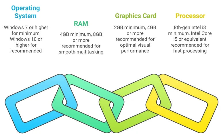RAM | The system requires at least 4GB of RAM to handle multiple programs at once smoothly. |